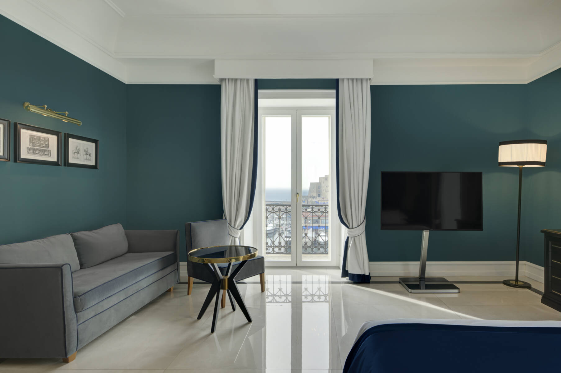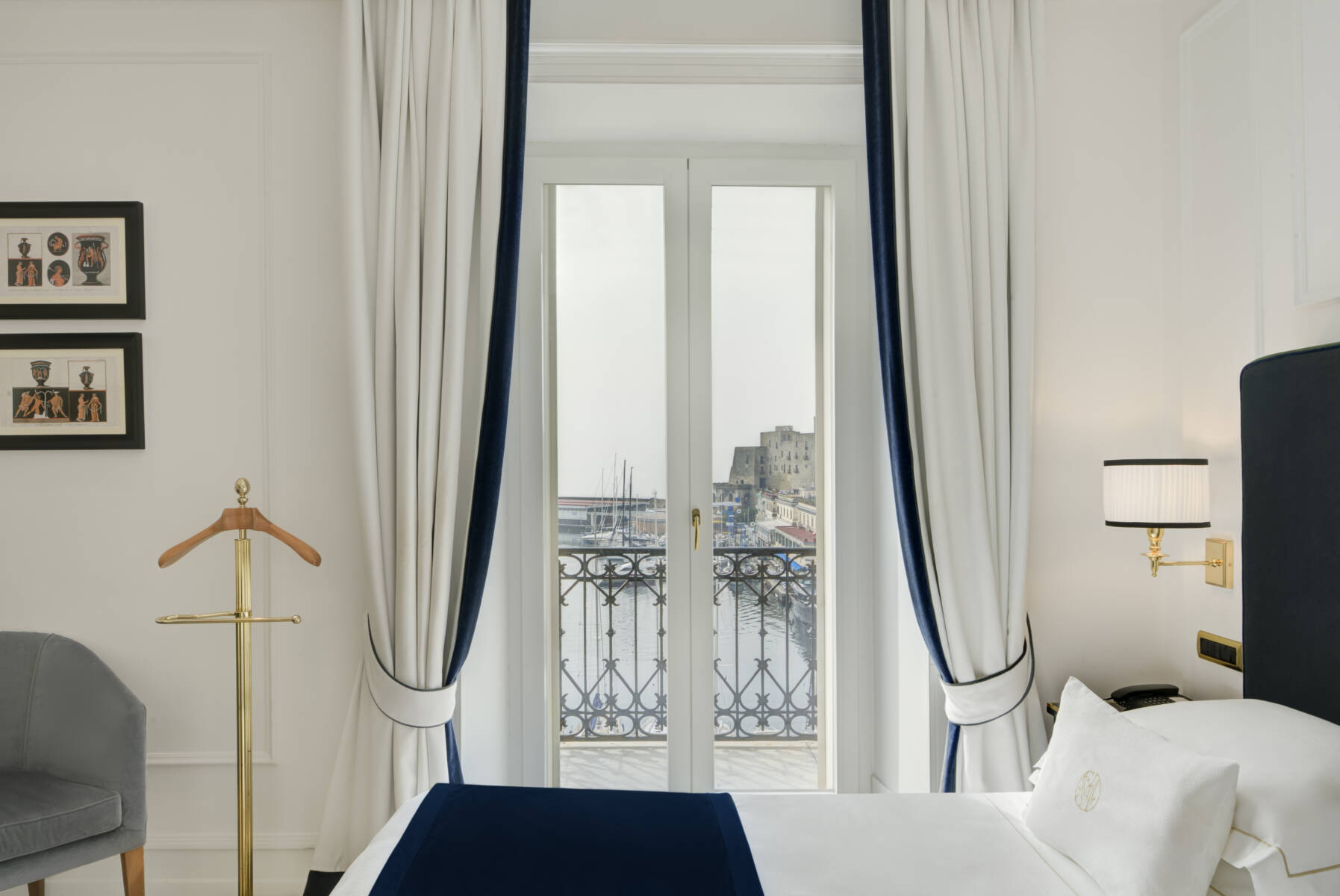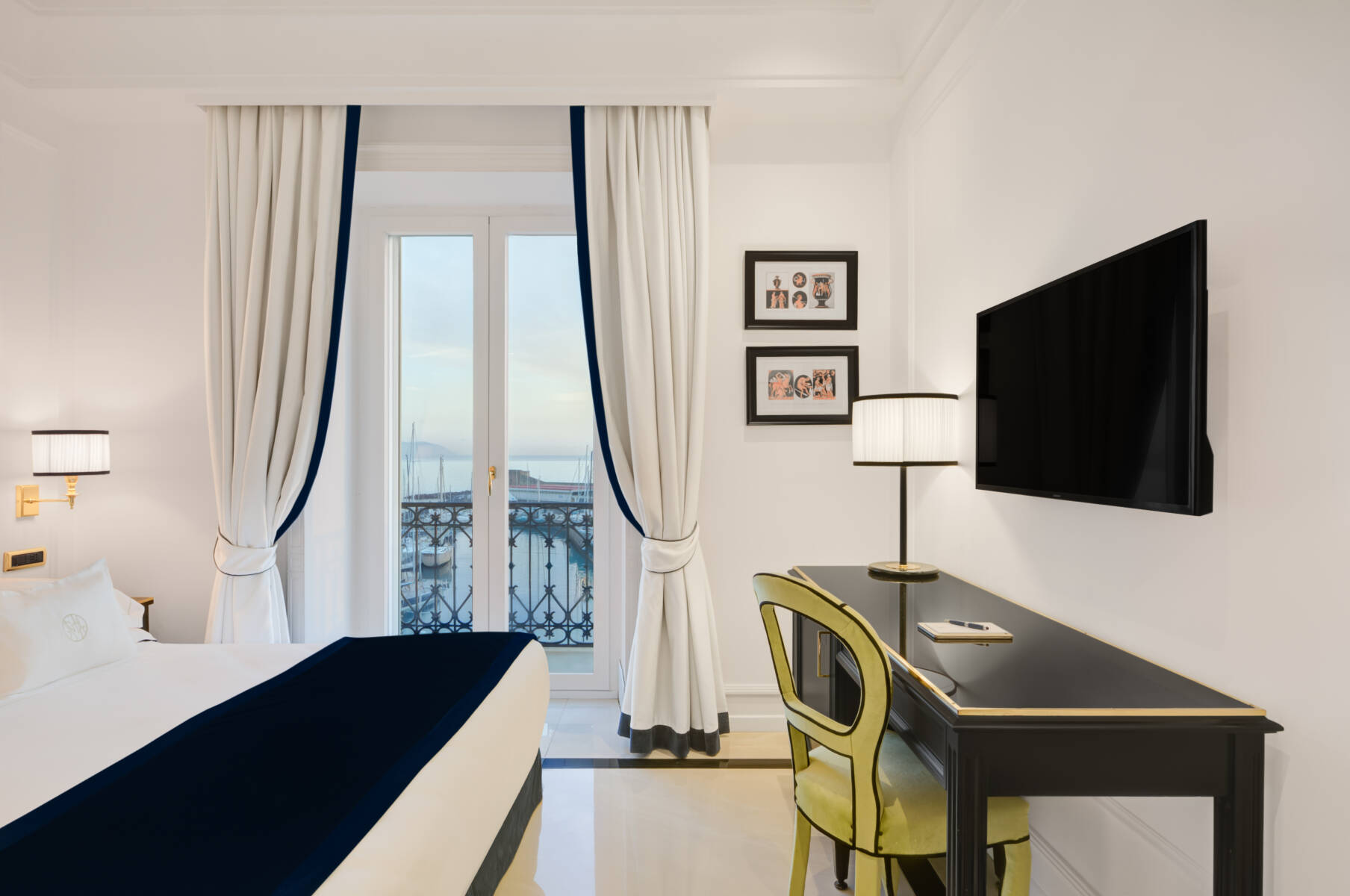 オーシャンビューエグゼクティブの客室からは、ナポリ湾、卵城、ボルゴ・マリナーリ…の素晴らしい景色が眺望できます。